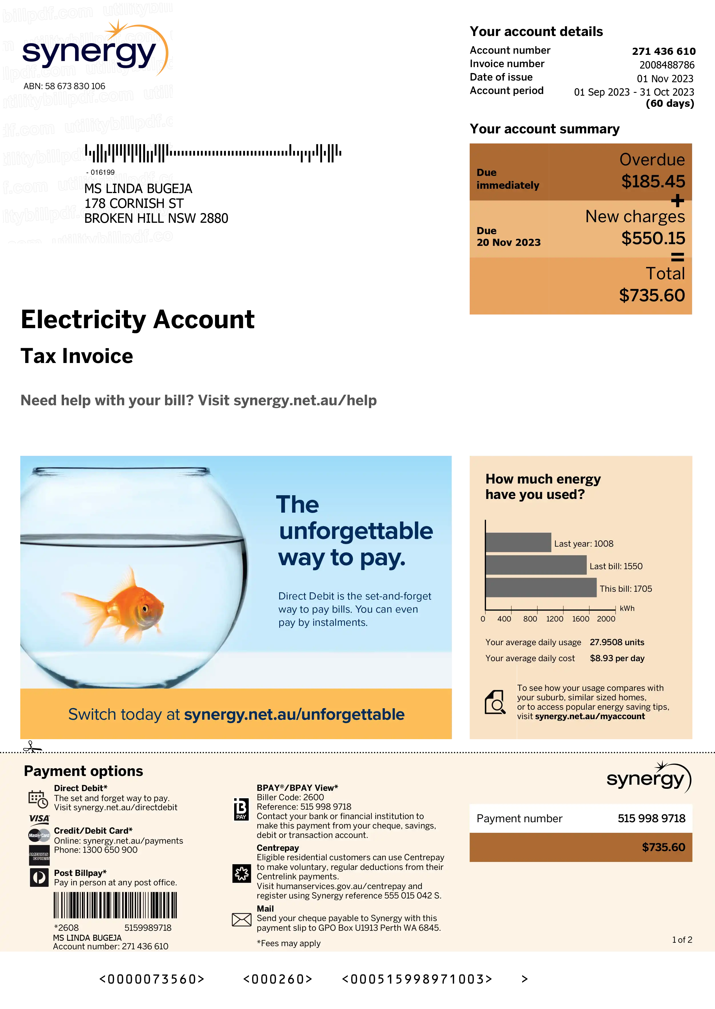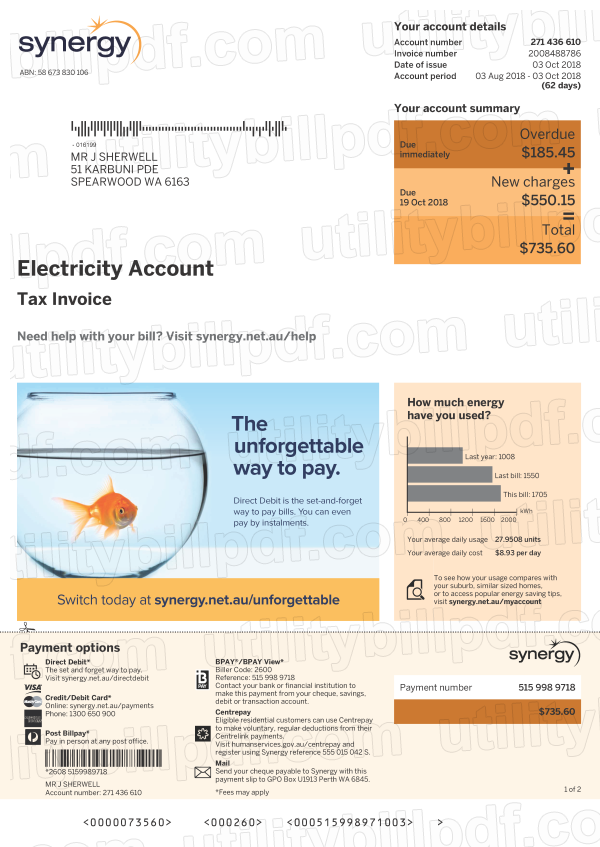 Australia Electricity Bills - Synergy